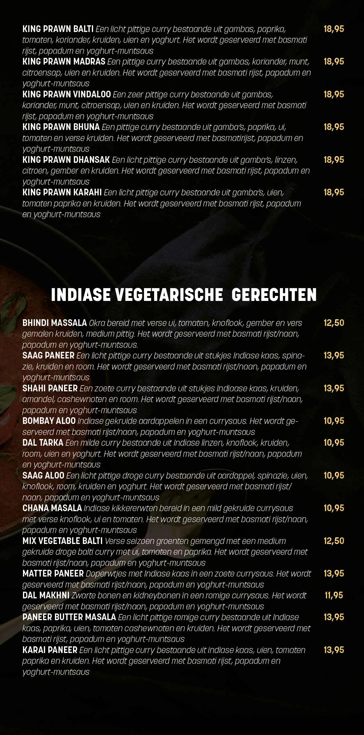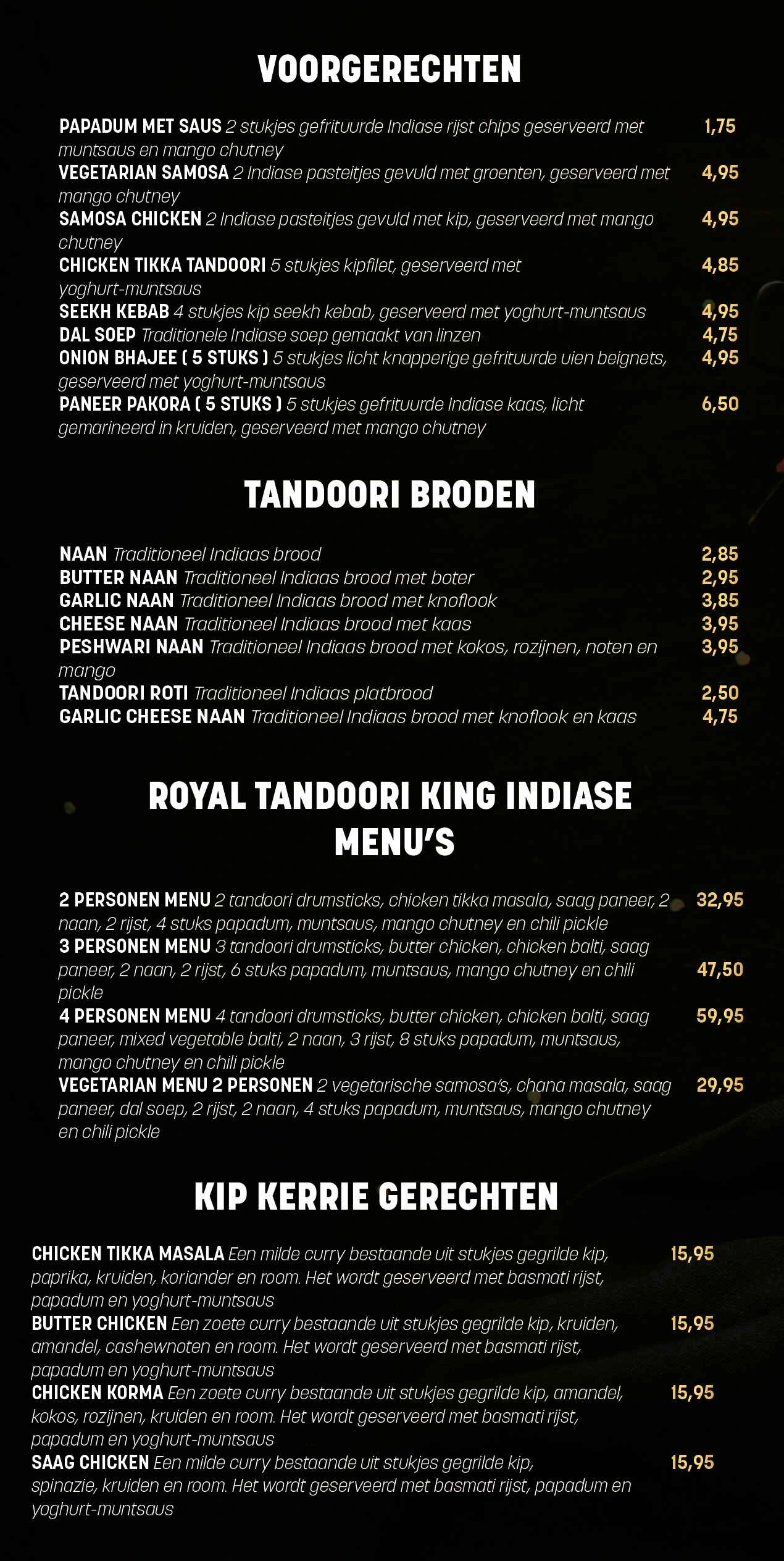Laat je meenemen op een culinaire reis door de authentieke smaken van India. Bekijk de kleurrijke gerechten, rijk aan specerijen en traditie, die stuk voor stuk met zorg en passie zijn bereid. Proef met je ogen en ontdek de unieke sfeer van de Indiase Tandoori-keuken!
